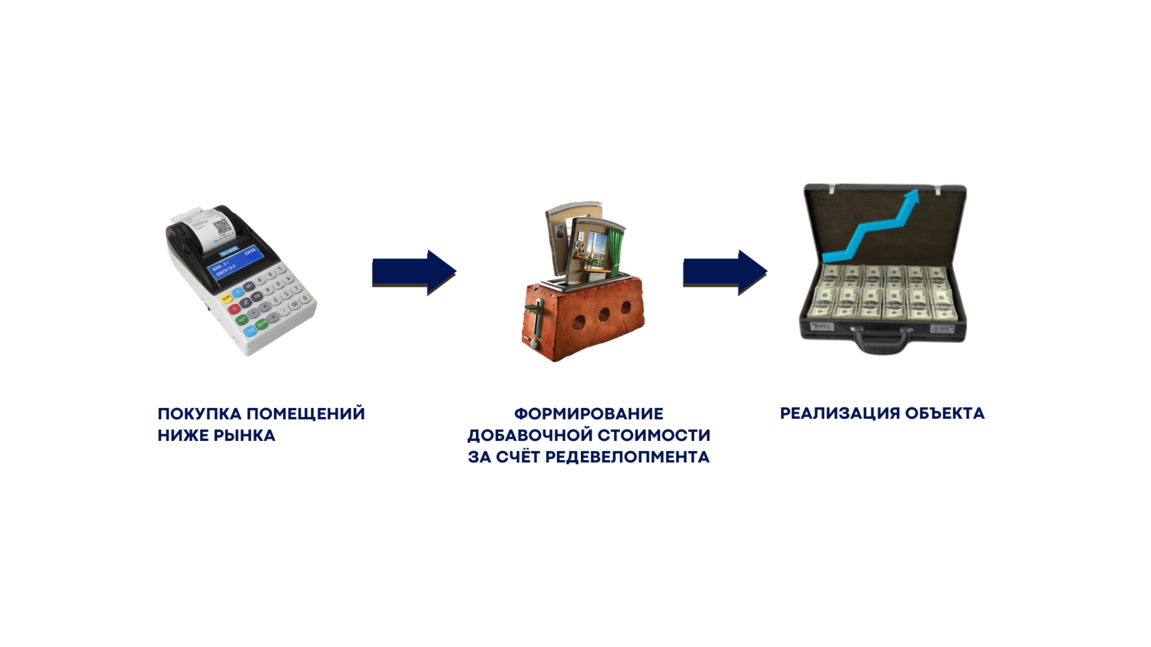 Благодаря авторской методике подбора ликвидных объектов, а также технологиям перепланировки и перепрофилирования, мы создаем продукт по доступной цене, что увеличивает спрос покупателей и ускоряет реализацию. Этот процесс напрямую влияет на доходность инвестора.